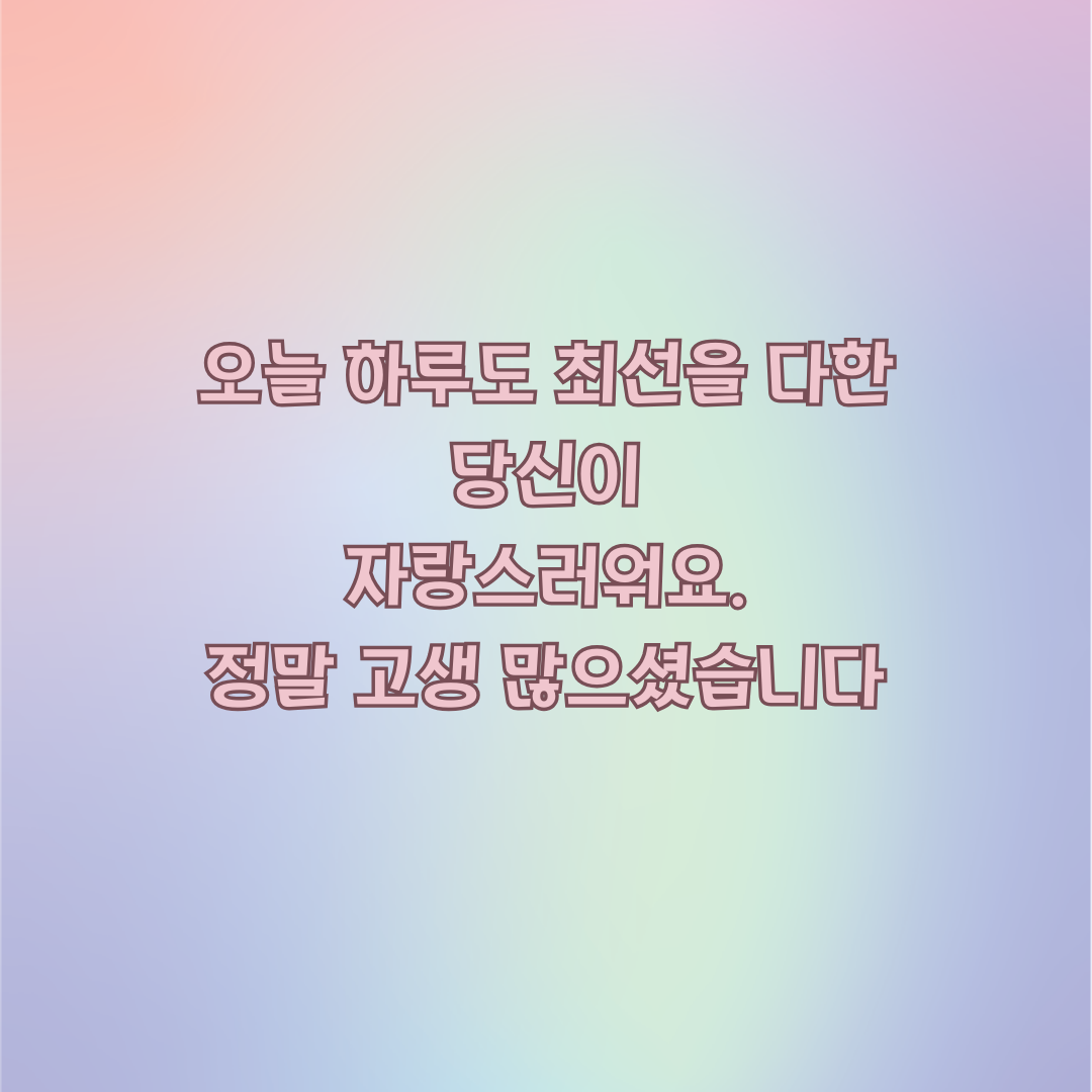 "오늘 하루도 최선을 다한 당신이 자랑스러워요. 정말 고생 많으셨습니다."
