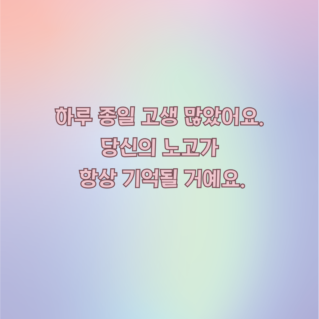 "하루 종일 고생 많았어요. 당신의 노고가 항상 기억될 거예요."