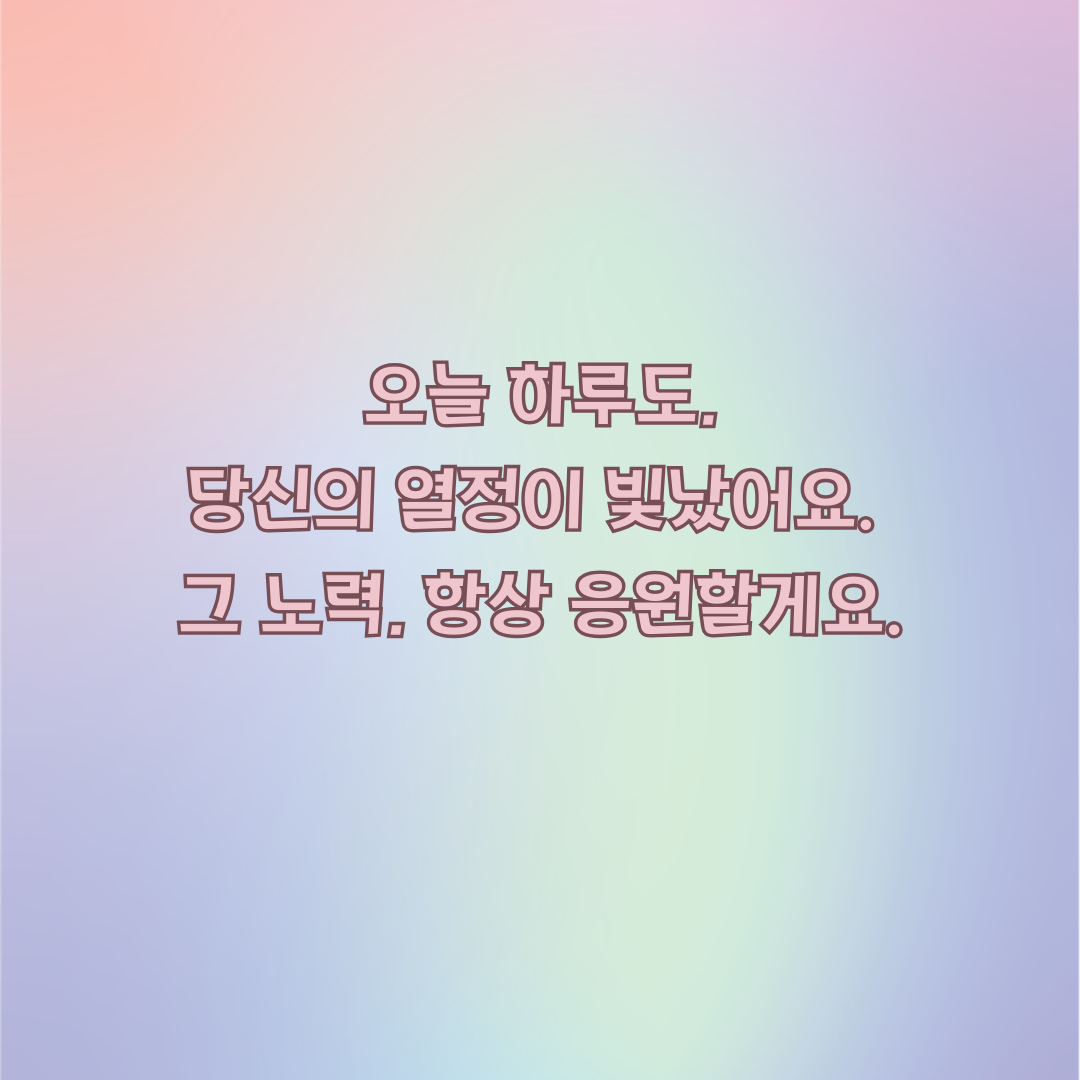 "오늘 하루도 당신의 열정이 빛났어요. 그 노력, 항상 응원할게요."