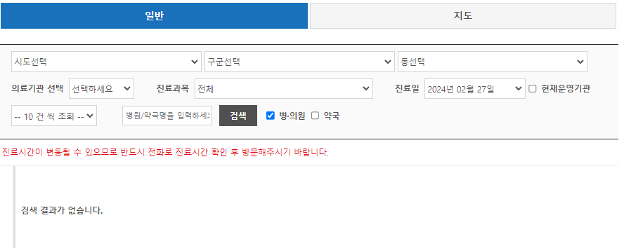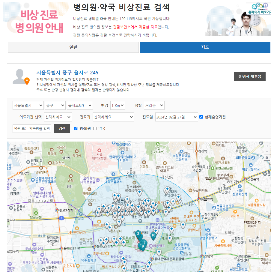 병의원·약국 비상진료 검색-일반 | E-GEN통합홈페이지